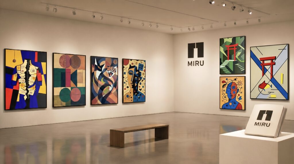 This section presents the central fascination and artistic value of míru’s works. The works are conceived as a coherent body. Each painting stands independently while forming part of a larger conceptual framework addressing consciousness, perception, and relationship.